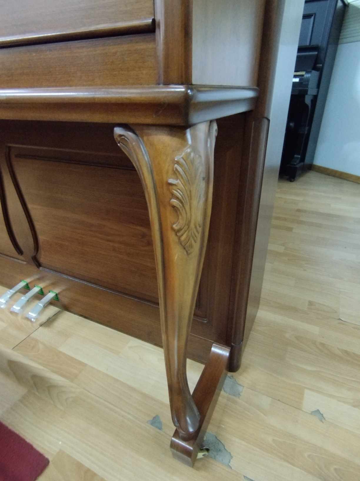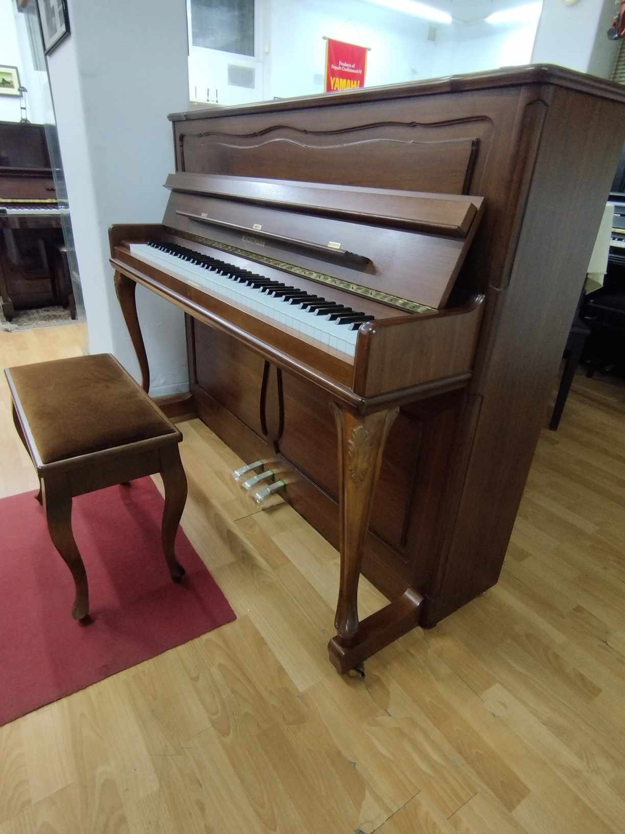Ένα αυθεντικό "made in Langlau, W. Germany" πιάνο, εξαιρετικής ποιότητας, αριστοκρατικής κατηγορίας. Χαρακτηριστικό στιλ επίπλου σε ύφος Chippendale, με σκαλιστά ποδαράκια, κατασκευασμένο από Ευρωπαϊκή καρυδιά, σε ματ βερνίκι. Μηχανισμός RENNER STUTTGART, εξ' ολοκλήρου Γερμανικά υλικά κατασκευής. Ευρωπαϊκός, μεστός και διαυγής ήχος, πολύ ευχάριστη απόκριση πληκτρολογίου. Διαστάσεις: ύψος 118 εκ., πλάτος 148 εκ., βάθος 56 εκ. 3 πεντάλ, ρόδες για εύκολη μετακίνηση. Το πιάνο διαθέτει ανοιγόμενο κάθισμα και καλύπτεται από γραπτή εγγύηση καλής λειτουργίας για 20 έτη. Για περισσότερες πληροφορίες καλέστε στο 210 4132715.