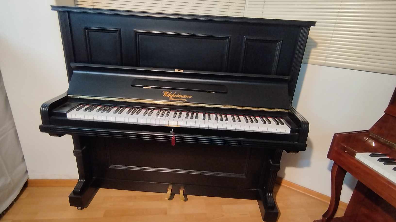 Ένα πολύ όμορφο κλασσικό, vintage πιάνο, κατασκευασμένο την περίοδο του μεσοπολέμου στο Braunschweig της Γερμανίας, το οποίο έχει ανακασκευαστεί πλήρως στο εργαστήριο μας. Έχει τον χαρακτηριστικό πλούσιο και γεμάτο ήχο των πιάνων εκείνης της εποχής. Οι διαστάσεις του είναι: ύψος 133εκ., πλάτος 146εκ., βάθος 68εκ. Μετά την ανακατασκευή, το πιάνο διαθέτει καινούρια κλειδιά και χορδές που διασφαλίζουν τη σταθερότητα χορδίσματος, νέα σφυριά και τσόχες μηχανισμού καθώς και νέα επένδυση πλήκτρων, τα οποία διασφαλίζουν την εξαιρετική αίσθηση παιξίματος και την υψηλή ποιότητα ήχου. Έγινε επεξεργασία στο έπιπλο του οργάνου και όλο το πιάνο έχει λουστραριστεί σε μαύρη σατινέ απόχρωση. Για περισσότερες πληροφορίες καλέστε στο 210 4132715.