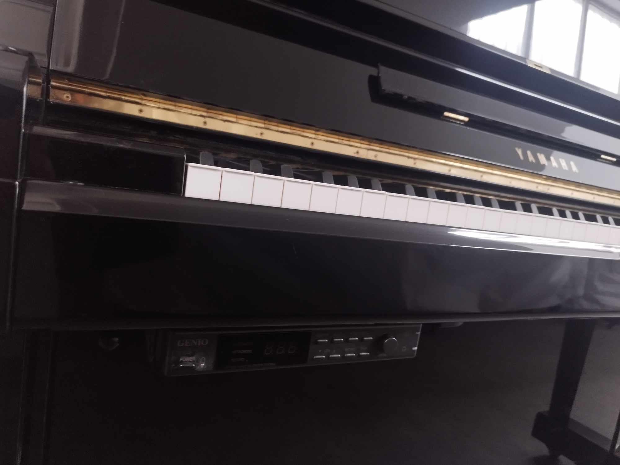 YAMAHA YUX Silent, πρόκειται για το τελειότερο όρθιο πιάνο της YAMAHA, με ιδιαίτερα κατασκευαστικά χαρακτηριστικά, όπως χιαστί διάταξη πίσω δοκαριών, ειδικά κατασκευασμένα σφυριά, επιλεγμένη ξυλεία για το ηχείο, κ.α. Ένα πανέμορφο ψηλό όρθιο πιάνο, σε εξαιρετικά καλοδιατηρημένη κατάσταση. Καταπληκτικός ήχος και αίσθηση παιξίματος. Τεχνικά χαρακτηριστικά: Ύψος 131 εκ, πλάτος 154 εκ., βάθος 65 εκ. Βάρος 240 Kg. Το εμπρός καπάκι διαθέτει ανοίγματα για την καλύτερη ηχητική μετάδοση (tone escape). Χρώμα: μαύρη πολυεστερική γυαλιστερή λάκα. Το πιάνο διαθέτει ρόδες για εύκολη μετακίνηση. Το silent system που έχει εγκαταστημένο είναι της εταιρείας GENIO. Το πιάνο διαθέτει επαγγελματικό, ρυθμιζόμενο σε ύψος σκαμπό και καλύπτεται με γραπτή εγγύηση καλής λειτουργίας για 20 έτη. Για περισσότερες πληροφορίες καλέστε 210 4132715.